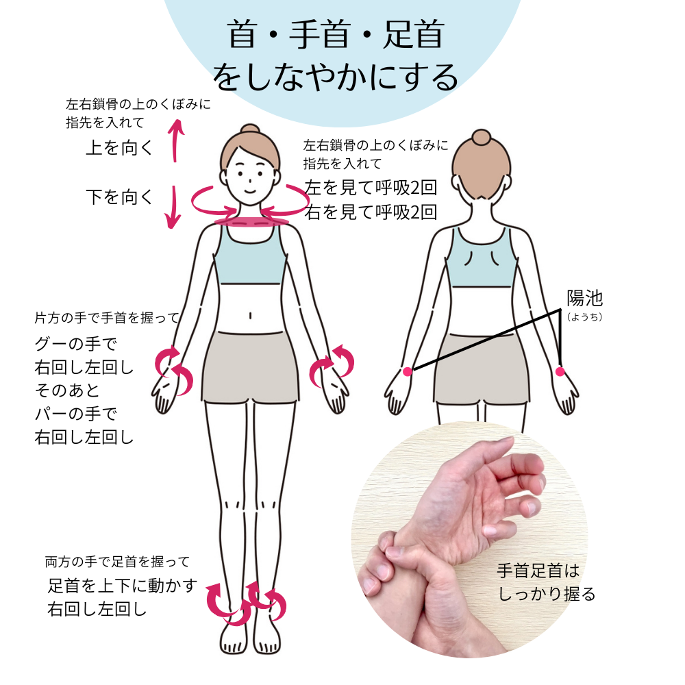 ゆっくり左に回して呼吸2回 右に回して呼吸3回